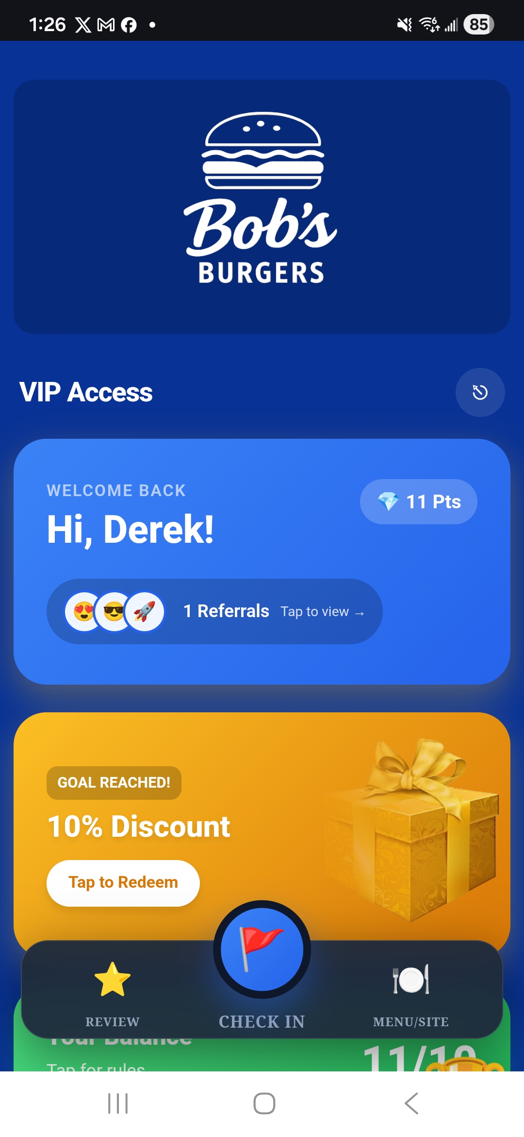 Branded User Dashboard for Point rewards, referrals, and check-ins